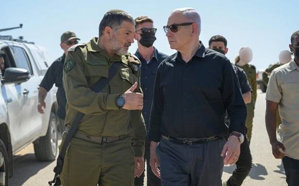 ראש הממשלה בנימין נתניהו ואלוף דוד זיני בעת ביקורו של ראש הממשלה בבסיס צאלים, 8 במאי 2025